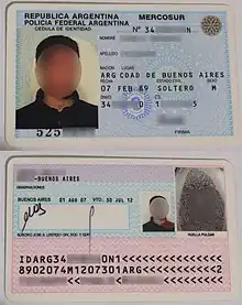 Desde la conformación del Mercosur, la cédula emitida por la Policía Federal podía emplearse como identificación al cruzar la frontera argentina con cualquiera de sus países vecinos y como forma legal de identificación en estos. En su último formato, llevaba en el frente la leyenda Mercosur y tenía una duración, al igual que el pasaporte, de 5 años; su costo a febrero de 2011, era de $17 (ARS) en la Ciudad de Buenos Aires. Desde el 1 de enero de 2015 la Cédula de Identidad no es válida para cruzar la frontera.