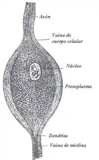 Una neurona bipolar o célula bipolar es una neurona con dos ramificaciones por fuera del soma o cuerpo neuronal.[1] Estas ramificaciones son: un axón y una dendrita, el axón envía información desde sus ramificaciones al soma y las dendritas reciben dicha información y la dirigen hacia las terminaciones dendríticas. Las células nerviosas bipolares generalmente son sensoriales y son aferentes del sistema nervioso central, como las presentes en el nervio olfatorio. Los ejemplos más comunes son las células bipolares de la retina y las que se localizan en el ganglio del nervio vestibulococlear.