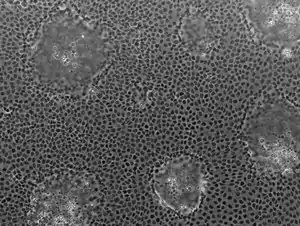 Caco-2 es una línea de células inmortalizadas de adenocarcinoma colorrectal humano. Se utiliza principalmente como modelo de la barrera epitelial intestinal.[1] En cultivo, las células Caco-2 se diferencian espontáneamente en una mezcla heterogénea de células epiteliales intestinales. Fue desarrollado en 1977 por Jorgen Fogh en el Instituto Sloan-Kettering para la Investigación del Cáncer.[2]