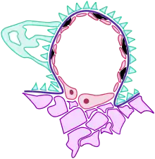 Las células mesangiales son células de músculo liso modificadas[1] que están en el corpúsculo renal. Se pueden dividir en intraglomerulares, que emiten prolongaciones hacia el glomérulo (lo recubre), y células mesangiales extraglomerulares que están fuera del corpúsculo, y forman parte del sistema yuxtaglomerular.