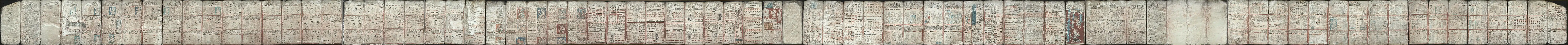 Tiene un total de 78 páginas sobre 39 hojas, con una longitud total de 3,56 metros. Cuatro de las páginas están vacías. Cada una de las hojas mide 20,5 cm por 10,0 cm. Originalmente, el códice había sido doblado en forma de acordeón. Desde 1835 ha sido exhibida en dos partes, cada una conservada entre paneles de vidrio. La primera parte contiene 20 hojas, la segunda 19.