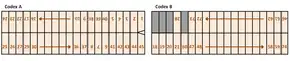 Los números de las páginas fueron asignados por Agostino Aglio cuando se convirtió en el primero en transcribir el manuscrito en 1825/26. Para ello, dividió el códice en dos partes, con la etiqueta Códice A y Códice B. Secuenció Códice A en el lado frontal seguido por su parte posterior, con el mismo orden en el Códice B. Hoy en día, se sabe que una lectura códice debe atravesar la parte frontal por completo, seguido de la parte posterior del manuscrito, es decir, páginas 1-24 seguido por 46-74 y 25-45.