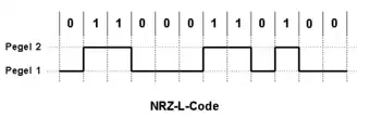 La tarea del código NRZL[1][2][3][4] (No Retorno al Cero) es simplificar la descodificación de un mensaje asignando un nivel de tensión en todo los símbolos que lo componen. La descodificación en banda base lleva a cabo una disposición diferente de los bits de la señal on / off, y de esta manera se adapta la señal al sistema de transmisión utilizado.