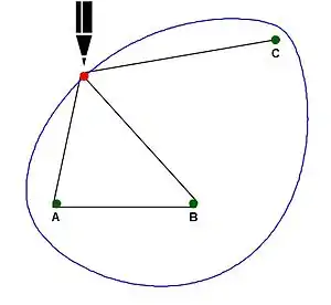 - Pasar el lápiz por A y C, y tensar hasta alcanzar P, moviéndolo de forma que la cuerda quede tensa.