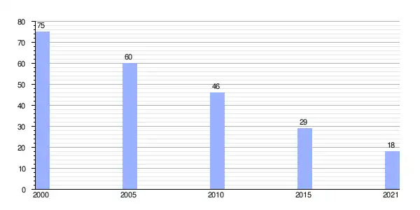 | Gráfica de evolución demográfica de Córcores entre 2000 y 2021 |