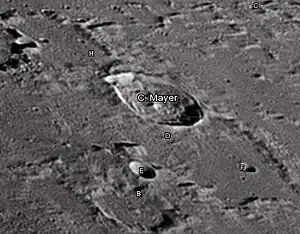 Por convención estos elementos son identificados en los mapas lunares poniendo la letra en el lado del punto medio del cráter que está más cerca deno a C. Mayer. El cráter C Mayer D presenta una silueta que recuerda al mapa de Brasil.[1]