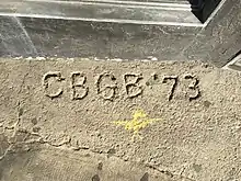 Hoy los visitantes pueden ver en el cemento de la entrada a la tienda de ropa, el nombre del escenario musical y la fecha en que fue fundado: "CBGB '73". La gente usualmetne se detiene y toma fotos de la inscripción así como de la fachada de la tienda.