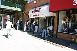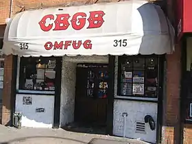 CBGB fue un club emblemático del punk rock y la new wave, ubicado en Nueva York, Estados Unidos, en el 315 de Bowery entre la 1.ª y 2.ª Calle en el Lower East Side de Manhattan. Abierto en 1973 por Hilly Kristal donde anteriormente funcionó un bar de moteros y después un antro.[1] Las iniciales CBGB significan Country, Blue Grass and Blues por los estilos que allí se tocaban inicialmente; y OMFUG, la otra parte del nombre, Other music for uplifting gormandizers, que significa "Otra música para nacientes consumidores" (teniendo en cuenta que la palabra "gormandizer" se define como devorador de comida se la puede entender como el mismo Hilly lo interpretó, devorador de música, sentido más adecuado que el de consumidor). CBGB se convirtió en un local famoso del punk y new wave donde eran habituales bandas como Ramones, Television, Patti Smith Group, Blondie, y Talking Heads.[2] Desde los años 1980 en adelante, el club fue conocido por el hardcore punk. El local cerró en 2006 y su dueño falleció en 2007.