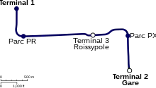 ![]() Dos trenes en la estación Terminal 3-Roissypôle | |||||||||||||||||||||||||||||||||||||||||||||||||||||||||||||||||||||||||||||||||||||||||||||
