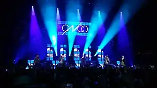![]() CNCO, en el escenario de uno de sus conciertos | |||||