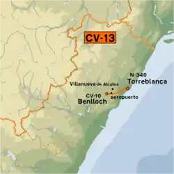 CV-13 (Benlloch - Torreblanca), carretera autonómica de la Comunidad Valenciana que comunica la CV-10 a su paso por Benlloch con la N-340 y AP-7 a la altura de Torreblanca.