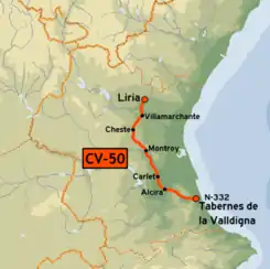 La CV-50 es una carretera autonómica valenciana que une las comarcas de Safor, la Ribera Alta, la Hoya de Buñol y el Campo de Turia, y su recorrido va de Tabernes de Valldigna a Liria, todas ellas en la provincia de Valencia. Pertenece a la Red Autonómica de Carreteras de la Generalitat Valenciana.