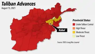 - «Afganistán: el Talibán entra a Kabul y el presidente Ghani abandona el país». BBC News. 15 de agosto de 2021.