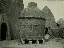 Los cabañas forman parte de un complejo de viviendas, graneros y un patio central encerrado en un muro compuesto de paja. Las paredes están conectadas para facilitar el acceso. Las superficies exteriores están ranuradas para que el agua de lluvia se pueda drenar fácilmente. El complejo también está protegido con cercas.[3] Se proporciona espacio para la expansión de las unidades de vivienda por cada nueva esposa o nuera o, para adiciones familiares.[11][12]