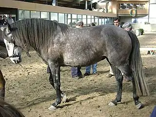 El caballo andaluz es una raza de caballo originaria de Andalucía. Se trata de un caballo ibérico de tipo barroco que está entre las razas equinas más antiguas del mundo. En España también se le conoce comúnmente como "caballo español" y se le denomina oficialmente Pura Raza Española (PRE), porque se considera que el andaluz es el caballo español por antonomasia, a pesar de que existen muchas otras razas equinas españolas. Sin embargo en la mayoría de países recibe el nombre de "caballo andaluz".[1] El caballo cartujano es una de las líneas de cría más importantes de esta raza.