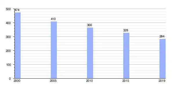 | Gráfica de evolución demográfica de Cabarcos entre 2000 y 2019 |