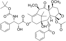 Es un agente antimitótico, es decir dificulta las mitosis (división celular), enlenteciendo de esta forma el crecimiento del tumor. Actúa uniéndose a la tubulina en el interior de la célula, facilitando la unión de esta a los microtúbulos, lo que resulta en inhibición del proceso de mitosis, pues los microtúbulos son esenciales para la división celular.[1]