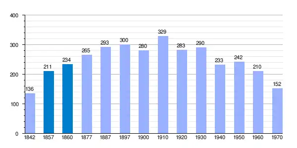 | Gráfica de evolución demográfica de Cabezuela de Salvatierra[4] entre 1842 y 1970 |