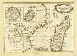![]() Mapa francés del canal de Mozambique (c.1791), mostrando el cabo Correntes en la entrada inferior | ||