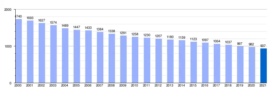 | Gráfica de evolución demográfica de Caboalles de Abajo[1] entre 2000 y 2021 |