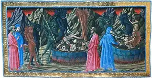 La cacería salvaje es conocida también por medio del folclore posmedieval de Alemania, Irlanda, Gran Bretaña, Dinamarca, Suecia, y en menor medida de Noruega. Uno de los orígenes postulados para el moderno arlequín es Hellequin,[20] un personaje de las obras de teatro románticas francesas basado en creencias populares. Hellequin, un emisario del demonio pintado de negro, solía vagar por los campos con un grupo de demonios empujando a las almas vagabundas de malas personas hacia el infierno. La apariencia física de Hellequin ofrece una explicación a los colores tradicionales de la máscara del arlequín (rojo y negro).[21]