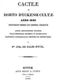 Cacteae in Horto Dyckensi Cultae (abreviado Cact. Hort. Dyck.)[1] es un libro con ilustraciones y descripciones botánicas que fue escrito por el botánico y artista alemán Joseph de Salm-Reifferscheidt-Dyck y publicado en el año 1850 con el nombre de Cacteæ in horto dyckensi cultæ anno 1849, secundum tribus et genera digestæ additis adnotationibus botanicis characteribusque specierum in enumeratione diagnostica cactearum doct. Pfeifferi non descriptarum. A Ppe Jos. de Salm-Dyck.