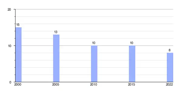 | Gráfica de evolución demográfica de Cadeliña (aldea) entre 2000 y 2022 |