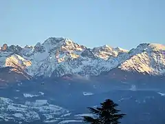 ![]() Vista panorámica de Belledonne y de su "balcón", visto desde Biviers . |