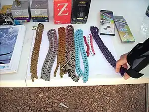 Para reducir su peso, las cadenas se fabrican con pasadores huecos y con piezas recortadas en los enlaces.[17] Las cadenas también se fabrican con acero inoxidable para resistir la corrosión y de titanio para reducir aún más su peso, pero son materiales generalmente caros.[18][19] Una tendencia reciente son las cadenas de varios colores, y al menos un fabricante ofrece un modelo de cadena específicamente para bicicletas eléctricas.[20]