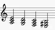 Los grados que componen la cadencia son I - VII - VI - V7 de la escala menor natural (modo eólico), exceptuando el V7, del que la escala-acorde correspondiente sería la escala menor armónica.