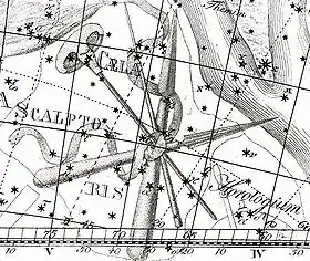 Carta celeste de la constelación del Cincel en la que aparecen sus principales estrellas.