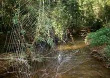 De acuerdo con el profesor Ingi Agnarsson, director del Museo de Zoología de la Universidad de Puerto Rico, la telaraña de la araña ocupa un nicho biológico único: "Construyen sus telarañas con los orbes suspendidos directamente sobre un río o un lago, un hábitat que ninguna otra araña puede usar".[2] Esta posición permite a la araña capturar moscas sobre el agua, con telarañas que pueden contener hasta 32 efímeras simultáneamente.[1] Se cree que la fuerte seda y el gran tamaño de la telaraña han coevolucionado al mismo tiempo que la araña se adaptaba a su hábitat.[3] Los científicos están actualmente investigando cómo es capaz la araña de tejer una telaraña de ese tamaño sobre el agua además de anclar las telarañas a ambos lados del río.[2]