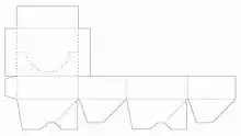 Caja cuyo fondo está formado por cuatro solapas unidas en grupos de dos mediante puntos de pegado. El envasador la recibe pegada y plegada y para montarla tan solo tiene que presionar sobre los vértices produciéndose así el encaje de las solapas. El sistema de cierre superior puede realizarse mediante solapas o mediante tapa incorporada.