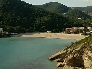 La playa Cala Llonga está situada en Santa Eulalia del Río, en la parte oriental de la isla de Ibiza, en la Comunidad Autónoma de las Islas Baleares, España.