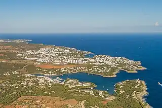 ![]() Vista aérea de Cala d'Or (centro) y Porto Petro (abajo) | ||