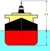 - Calado aéreo para la máxima carga: Es el menor de ambos y se observa con el buque en su mayor estado de carga.