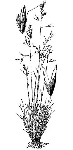 Es una planta perenne, hierba sin rizomas que forma mechones y racimos de hasta unos 50 centímetros de altura máxima, pero en general es más corta. Las hojas son pequeñas y dispersas y se encuentran principalmente en la base de los tallos. La inflorescencia es pequeña y dispersa, con espiguillas de alrededor de medio centímetro de largo.