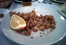 Puntillas, calamares pequeños fritos enteros, una tapa popular de España.