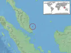 Es endémica de la isla Tioman, en el archipiélago de Seribuat (Malasia Peninsular).