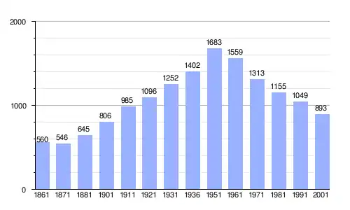 | Gráfica de evolución demográfica de Calciano entre 1861 y 2001 |