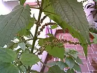 Es un arbusto perenne de un 1-1,5 m de altura, muy ramificado. Sus tallos son rectos y leñosos. Sus hojas son opuestas, ovaladas, cerradas y pubescentes, y miden entre 3 a 4 cm de largo, por 2 a 3 cm de ancho. Sus flores son cimosas de unos 4 mm de color blanco, y florecen en septiembre.