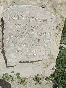 Lápida con el supuesto calendario agrícola encontrado en Gézer (Israel), considerado uno de los textos hebreos más antiguos, escrito en caracteres 'paleo-hebreos' propios de la época anterior a la deportación a Babilonia de los habitantes de Judea en el siglo VI a. C. Esta inscripción proporciona información clave sobre el ciclo agrícola en el antiguo Israel.