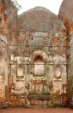 Una de las características de la iglesia construida por los jesuitas, la cual aún se conserva y ha sido apuntalada para evitar su derrumbe, era que el altar formaba parte integral con la pared. Sobre ello el Arq. Juan Giuria sostiene lo siguiente: