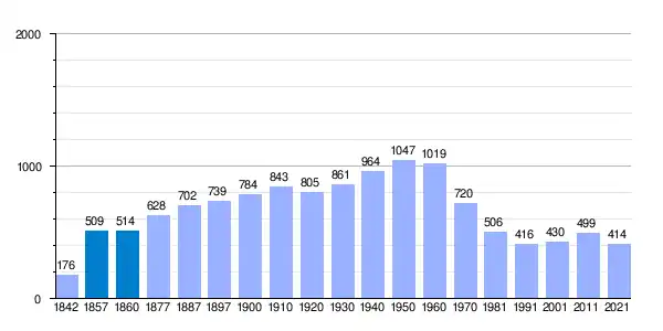 | Gráfica de evolución demográfica de Caleruega[4] entre 1842 y 2021 |