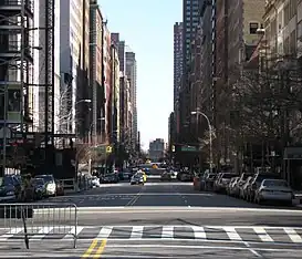 | Cruces | York Avenue, Primera Avenida, Segunda Avenida, Tercera Avenida, Avenida Lexington, Park Avenue, Madison Avenue, Quinta Avenida, Central Park West, Columbus Avenue, Amsterdam Avenue, Broadway, West End Avenue, Riverside Drive. | ||||||||