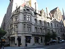 La mansión que alguna vez estuvo en la esquina sureste de la Quinta Avenida fue la primera mansión de la edad dorada en ser reemplazada por un bloque de departamentos, 907 Fifth Avenue.