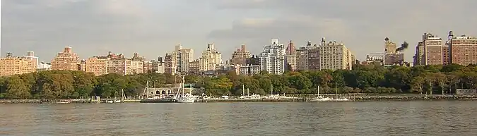 - En Broadway se levanta The Apthorp (arquitectos Clinton & Russell, 1908), uno de los edificios de apartamentos clásicos del lado oeste y la Primera Iglesia Bautista en la Ciudad de Nueva York (arquitecto George M. Kaiser, 1891).