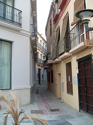 En esta calle se encontraban tiendas de mercaderes árabes y más tarde ha albergado tradicionalmente establecimientos de hostelería que acogían a los viajeros que llegaban a Málaga desde el puerto o por tierra. Así encontramos el edificio del antiguo Mesón de la Victoria, que acoge el Museo de Artes y Costumbres Populares de Málaga; o el edificio de la antigua Posada de Antonio Díaz, restaurado y abierto en 2010 como Hotel Vincci Selección Posada del Patio, de cinco estrellas[3] y bajo el cual se aprecian restos de la antigua muralla de Málaga.[4]