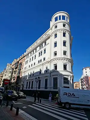 ![]() Detalle de la fachada del edificio rehabilitado de la Fiscalía Provincial de Bizkaia en la calle Henao. | ||