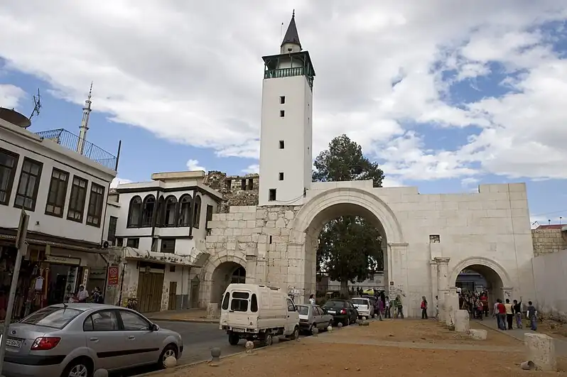 Durante el período del Mandato francés entre las dos guerras mundiales, se descubrió un antiguo arco de triunfo romano a 4,5 m bajo tierra, aparentemente parte de un tetrapilón en el punto de cruce del Decumanus y el Cardo; fue excavado y reconstruido a nivel de calle. Este lugar se considera la frontera entre los tres distritos históricos que se desarrollaron desde la conquista islámica: al oeste del arco triunfal se encuentra la parte musulmana del casco antiguo, con sus mezquitas, por otro lado al este el barrio cristiano, al norte de la Via Recta, y al sur el barrio judío abanonado parcialmente a finales de los años 1940 y completamente desde 1990.